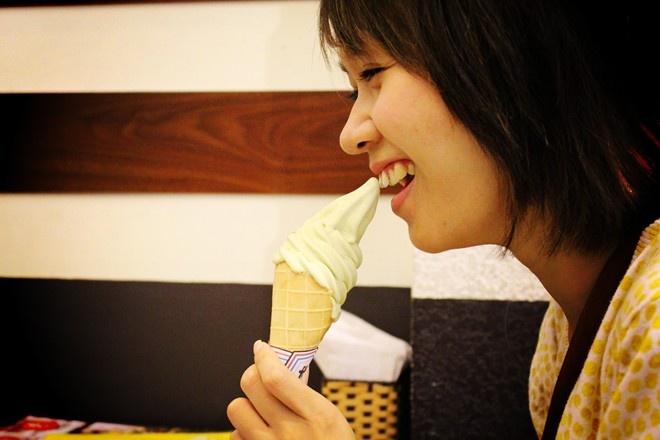 Tuy nhiên, chế biến bằng máy làm kem tươi cộng với vị trà xanh không đậm đà, món kem này tại đây chưa được lòng những tín đồ matcha khó tính. Ảnh: Huỳnh Hằng.