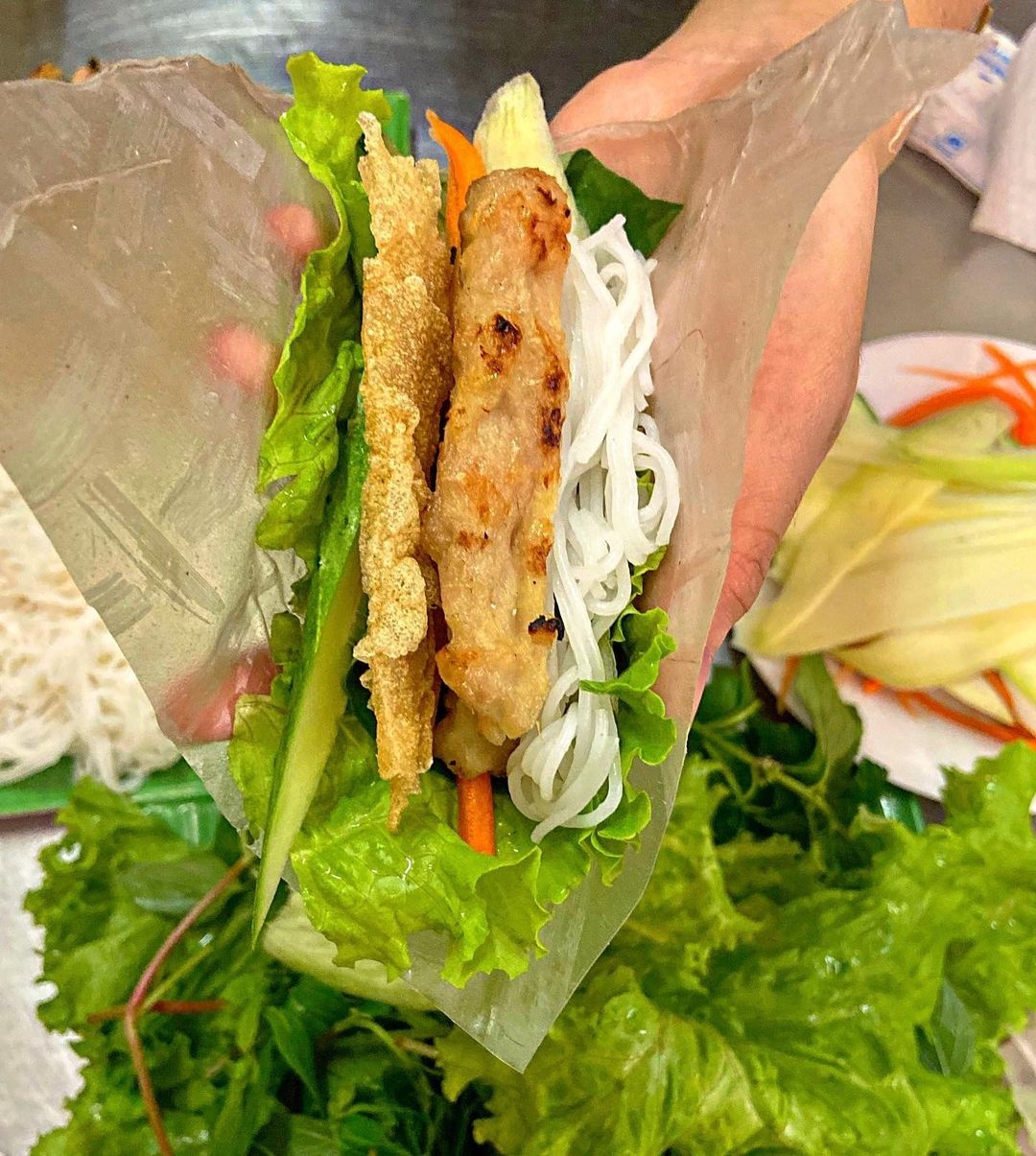 Thon.foodie: "Mình đã ăn nhiều chỗ nhưng ưng nhất quán này. Phần ăn cho một người khoảng 39.000 đồng gồm nem nướng, bánh tráng chiên, rau sống, cà rốt chua. Nước chấm sền sệt, nóng hổi có vị chua nhẹ. Không gian quán sạch sẽ, mình nghĩ phù hợp với ăn uống gia đình bình thường".
