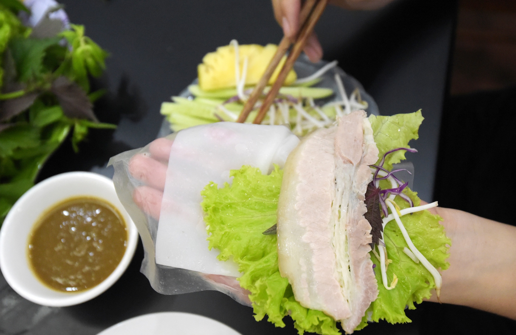 | 2. Bánh tráng thịt heo Hoàng Bèo: Món ăn không còn xa lạ với người Hà Nội nhưng chỉ một số ít quán mới tạo được tên tuổi và có độ phủ rộng rãi như Hoàng Bèo. |