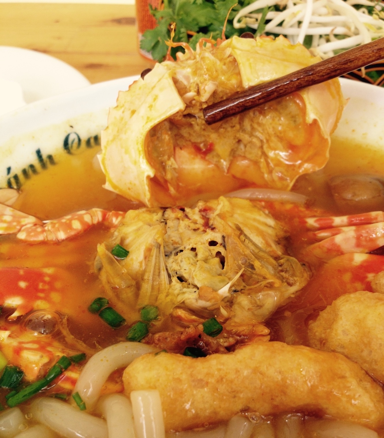 | Không quá đặc sắc nhưng tiệm này câu khách bằng tô bánh canh bắt mắt với ghẹ nguyên con. Bên cạnh đó, cách chế biến sợi bánh tròn béo, trơn tuột, cái chả cua đậm đà hay miếng bánh cua giòn tạo nên hương vị thú vị, lạ miệng với người Hà Nội. |