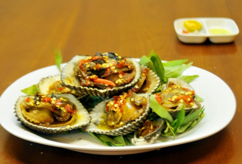 Các món ốc nên gọi tại quán là tôm nướng muối ớt, nghêu hấp, sò huyết nướng....