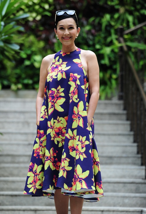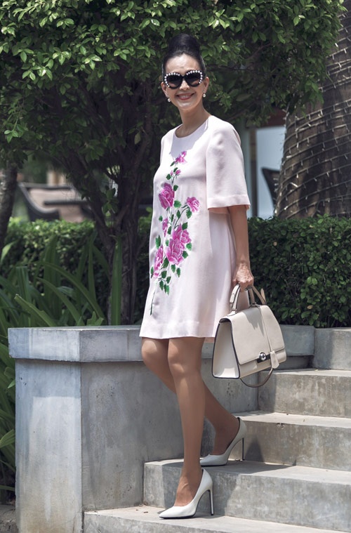 Dù đã bước qua tuổi tứ tuần nhưng Diễm My không e ngại với màu sắc và hoa lá, và quả thật trông chị luôn hấp dẫn.