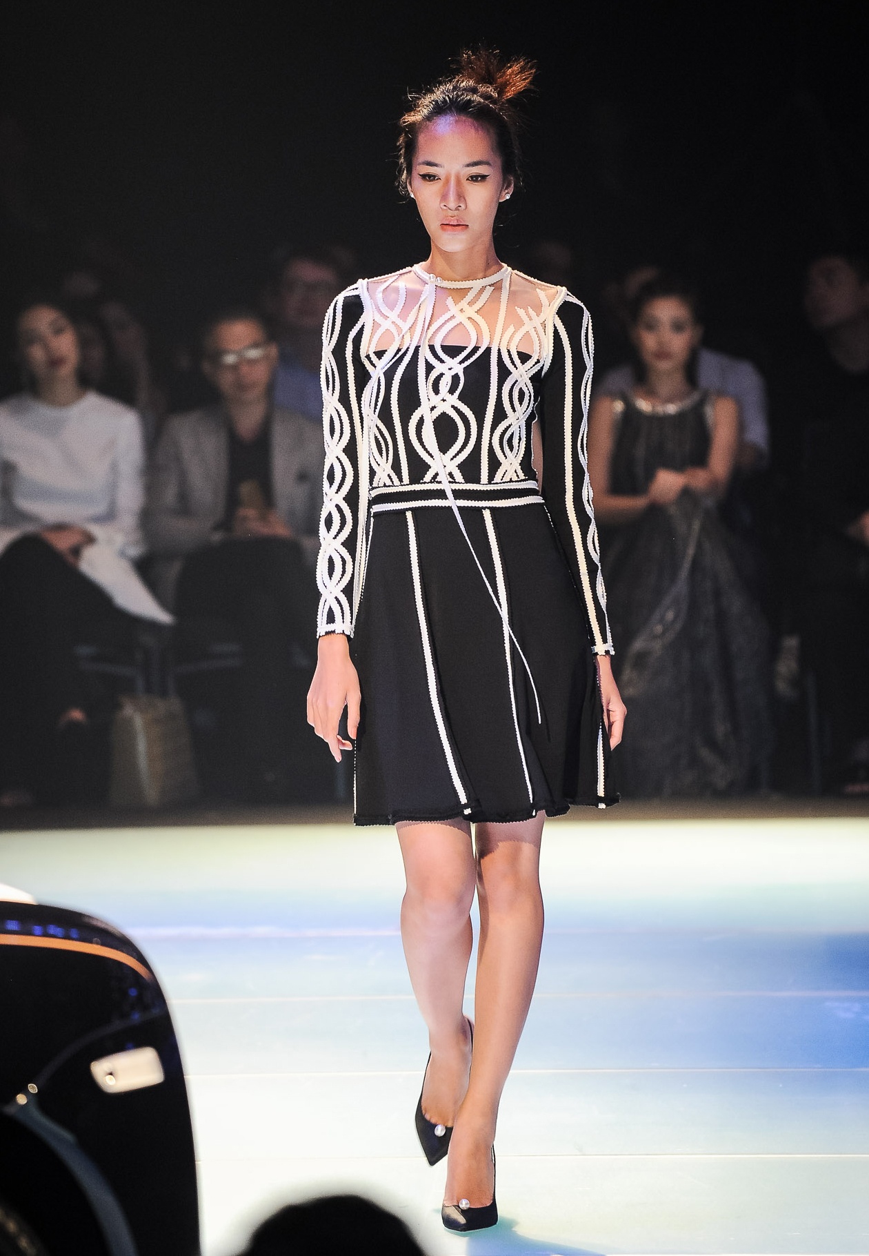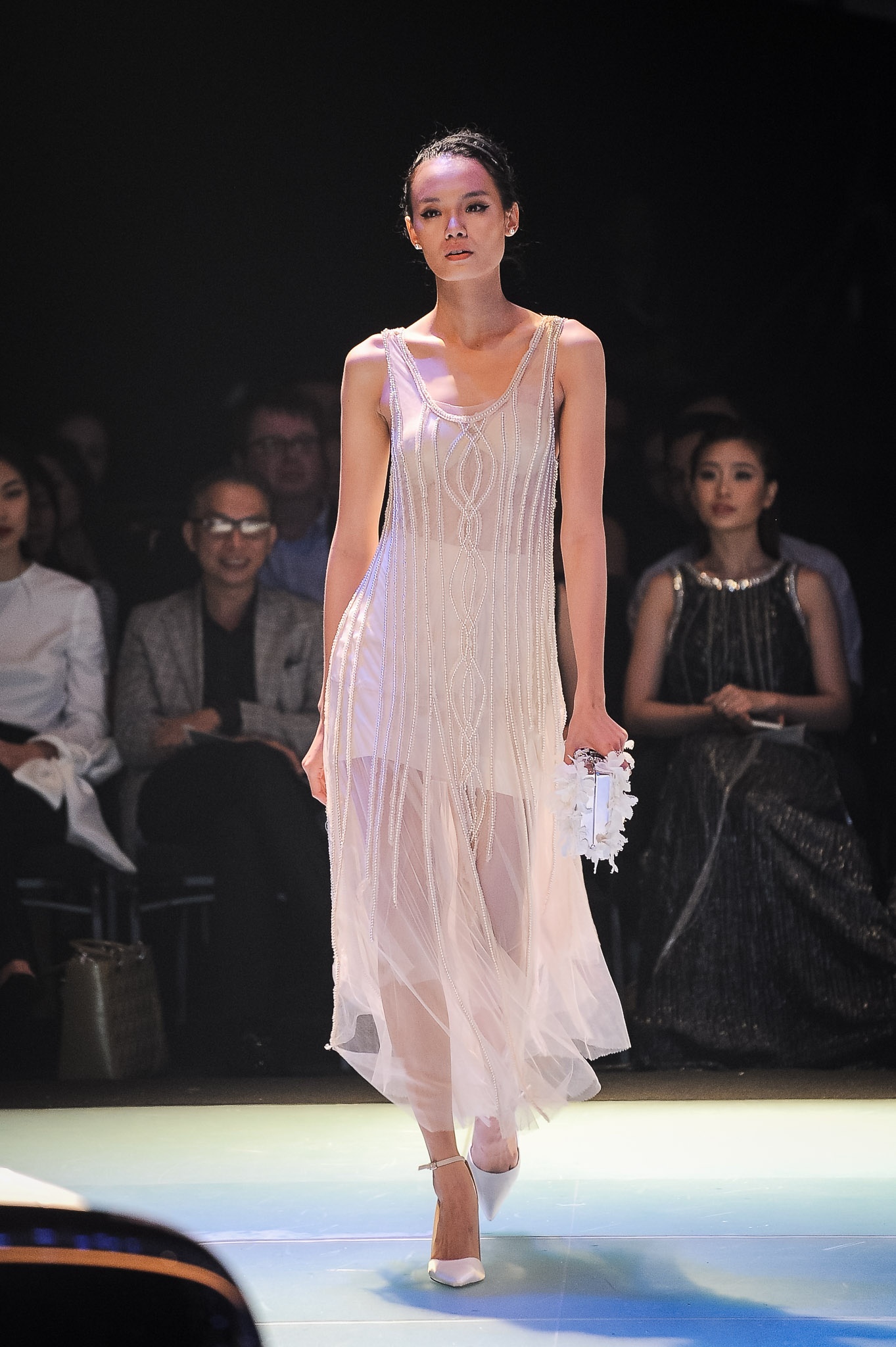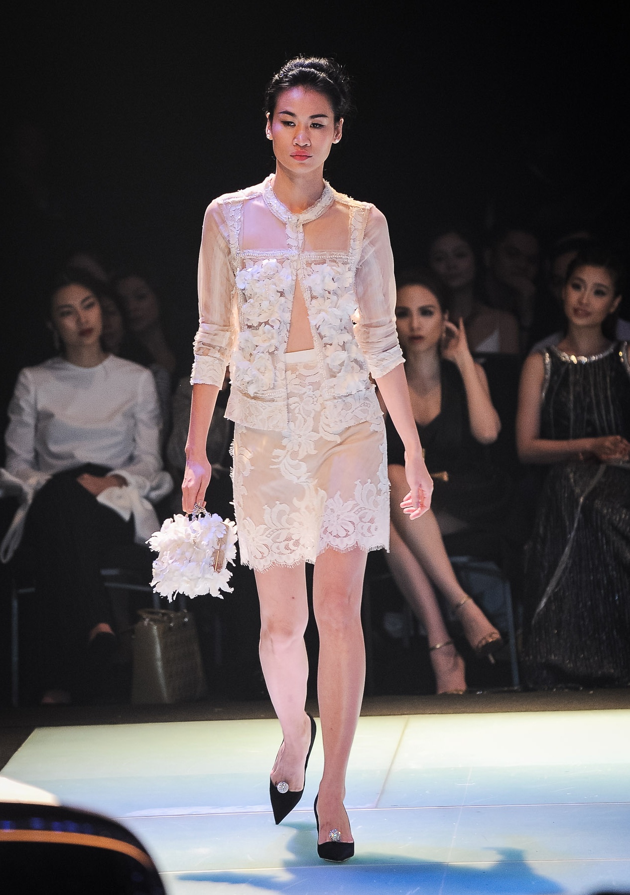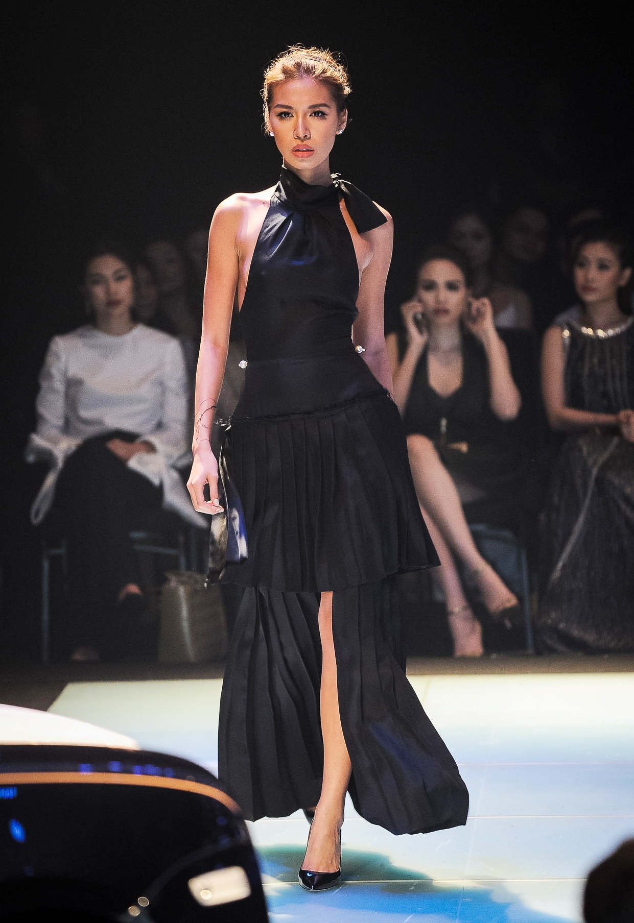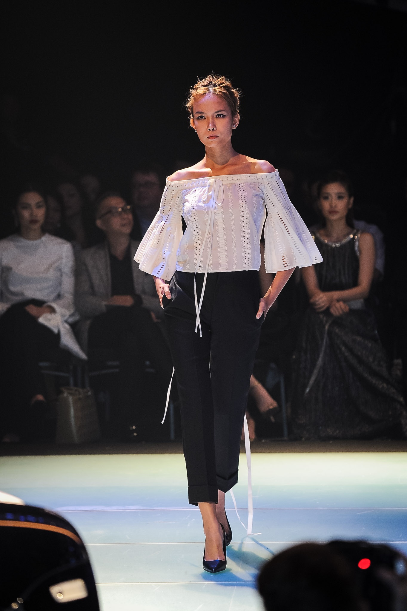 | Tông màu chủ đạo của bộ sưu tập là trắng đen thanh lịch, nền nã. Chất liệu chính là voan mỏng xuyên thấu. Các thiết kết được cắt cúp sáng tạo dựa trên yếu tố thời trang cổ điển, pha trộn đường nét tân thời, phù hợp xu hướng đang thịnh hành. |