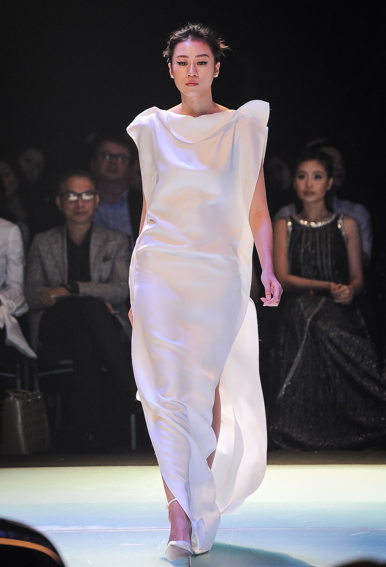 | Lâm Gia Khang, nhà thiết kế trẻ trưởng thành từ Project Runway Vietnam mang đến sàn diễn Elle Show những thiết kế mềm mại và không kém phần quyến rũ. |
