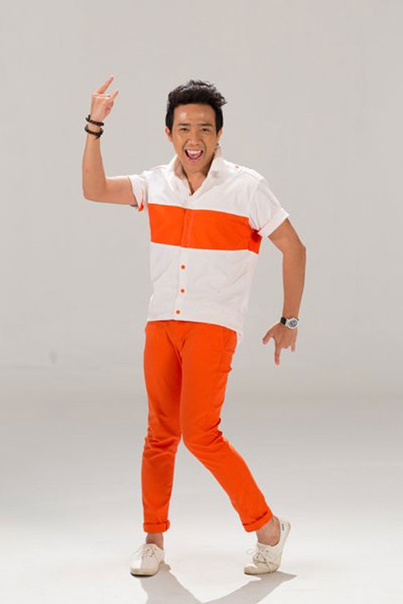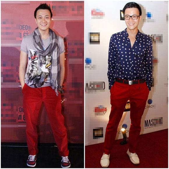 | MC Trấn Thành cũng từng thử nghiệm phong cách màu mè nhưng có phần nền nã hơn, anh luôn kết hợp quần màu sắc cùng sơ mi trắng để tránh phản cảm và rối mắt. |