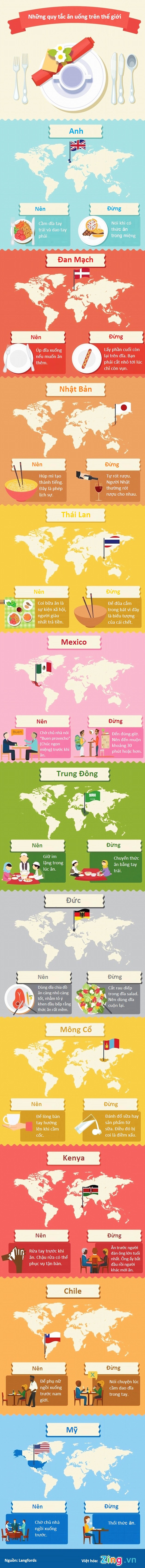 Húp mì thành tiếng ở Nhật Bản, nên đến muộn 30 phút ở Mexico, người giàu nhất phải trả tiền... là những quy tắc ăn uống độc đáo của một số quốc gia trên thế giới.