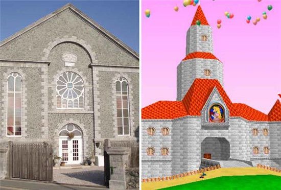 | 5. Giáo đường Capel - Game Mario Kart64:Princess Peach's Castle: Lâu đài ở trạm cuối của công chúa Peach trong game này được dựng lên xinh đẹp trên nền giáo đường Welsh, với phong cách kiến trúc nguyên thạch và cửa sổ ngũ sắc, khiến không ít du khách mê mẩn. Tất nhiên, ở đây không có huy chương vàng bạc đồng như trong game. |