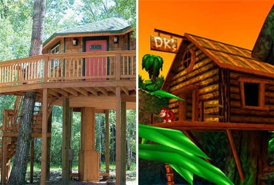 | 1. Biệt thự Bên Hồ - Game "Donkey Kong Country Returns": Rừng cây um tùm là nơi tuyệt vời để tìm cảm giác mạo hiểm cả trong game và hiện thực. Biệt thự này nằm giữa núi Pine Ridge và sông Privassion, cảnh sắc choáng ngợp tuyệt vời. Giá cho mỗi đêm nghỉ tại biệt thự là 295 USD. |
