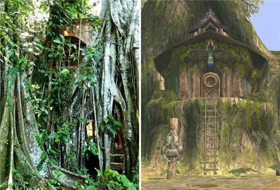 | 9. Nhà Cây Toboggan - Game The Legend of Zelda 'Ocarina of Time': Đây là một Nhà Cây độc đáo nằm trong rừng cây tùng bách ở Costa Rica (Mỹ). Nghỉ trong nhà có thể ngắm nhìn những thú vật nhỏ bé vui chơi bên ngoài, nào là chim ruồi, nào là vẹt, cách không xa còn có hồ nước trong đó có những chú ếch đáng yêu. |