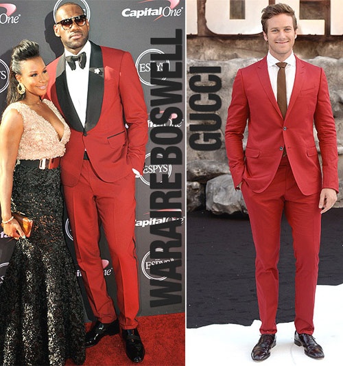 | LeBron James trong bộ vest Waraire Boswell và Armie Hammer lịch lãm với trang phục của Gucci. |