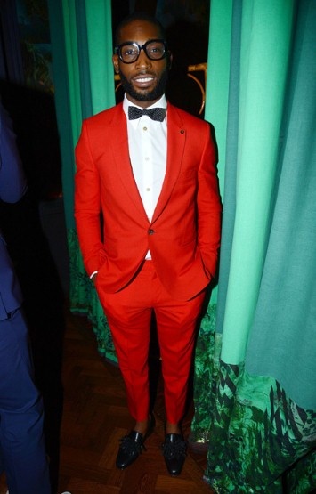| Tinie Tempah nổi bật với bộ vets đỏ cam. |