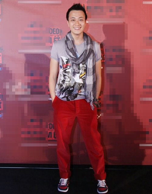 | Một cách phối hợp khác với chiếc quần đỏ cho thấy óc thẩm mỹ tinh tế của nam diễn viên điển trai. |
