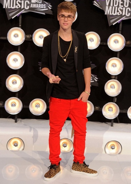 | Justin Bieber có nhiều quần đỏ, quần hồng. Với chiếc quần nào, anh chàng cũng rất cá tính, sành điệu và thời trang. |