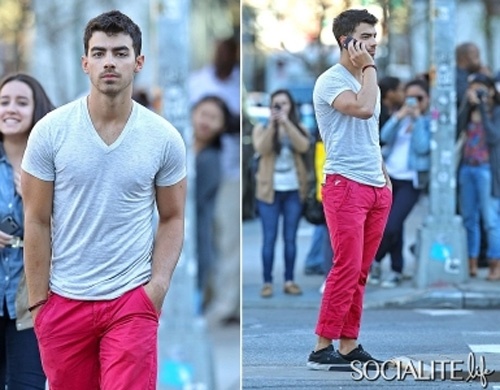 | Joe Jonas điệu với chiếc quần kaki màu hồng. |