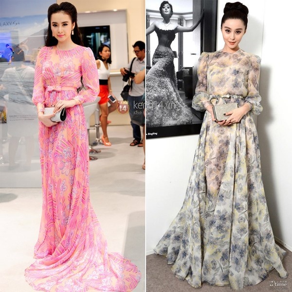 "Bà mẹ nhí" sẽ hoàn hảo hơn nếu nhiều người không nhận ra, phong cách đó của cô hoàn toàn là copy từ Phạm Băng Băng. Tức là "nữ hoàng thị phi" Hoa ngữ mặc váy gì với tóc gì, phối cùng clutch hay túi nào, Angela Phương Trinh trông cũng sẽ na ná như vậy, nhưng là với phiên bản... hàng nhái.