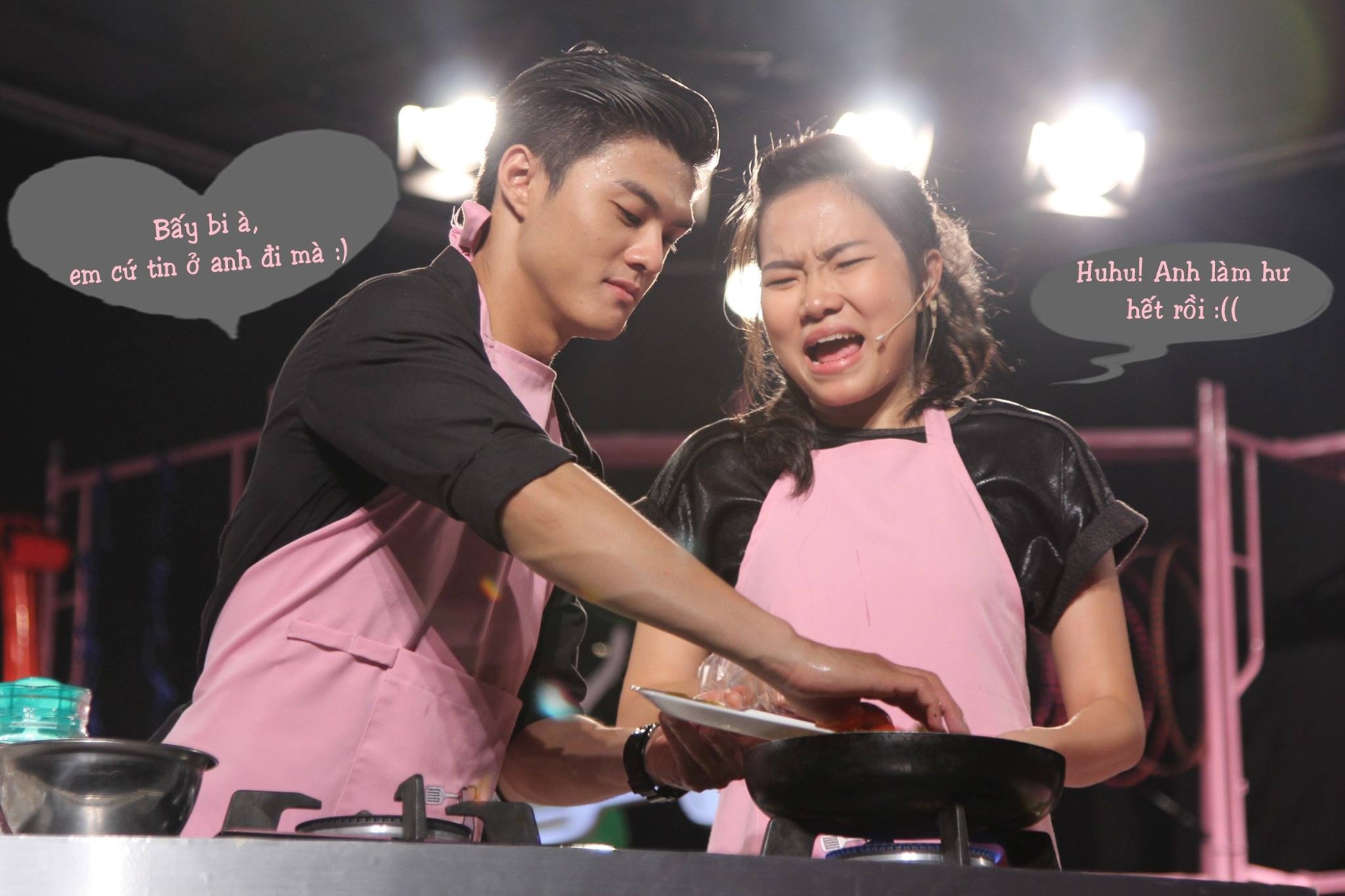 | Lâm Vinh Hải và vợ: Lâm Vinh Hải được nhiều người biết đến kể từ sau khi anh giành danh hiệu quán quân cuộc thi Thử thách cùng bước nhảy mùa đầu tiên. Khá kín tiếng về đời tư, Lâm Vinh Hải ít khi nào chia sẻ về gia đình mình trên mặt báo. Tuy nhiên, anh lại rủ vợ tham gia Vào bếp chuyện nhỏ lần như một cách công khai giới thiệu bà xã trước công chúng. Ở phần thi Tâm đầu ý hợp, do đã là vợ chồng nên cặp đôi của Lâm Vinh Hải có phần chiếm ưu thế so với cặp đôi đối thủ là hai người bạn thân. Cả hai đã trả lời trùng khớp hầu hết những câu hỏi hóc búa mà Ban giám khảo đặt ra. Ở phần thi Phối hợp ngay sau đó, cặp đôi Xuân Nghi – Quốc Đại đã có nhiều cố gắng hơn nhưng vẫn chịu thua trước Lâm Vinh Hải và bà xã. Dẫu vậy, cả hai gặp không ít khó khăn khi cùng nhau vào bếp. Hình ảnh hài hước của cặp đôi được chia sẻ trên mạng xã hội. |