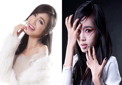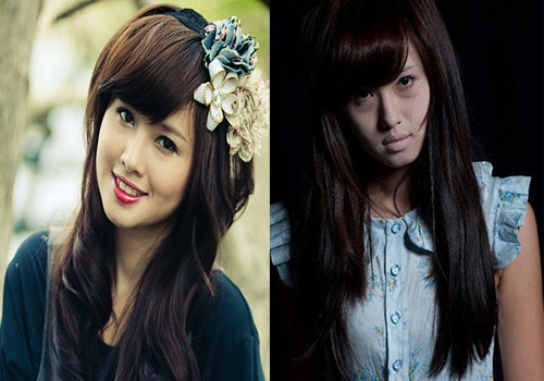 Hot girl Hà Thành – Tâm Tít đã có màn “lột xác” ngoạn mục khi đảm nhiệm vai ma nữ trong bộ phim kinh dị Giữa hai thế giới. Trong phim, vẻ đẹp trong sáng, đáng yêu của cô nàng được thay bằng sự ma mị, lạnh lẽo, cùng ánh mắt khiến người xem “rùng mình”. Cô đã thực sự thành công trong việc “dọa ma” khán giả.