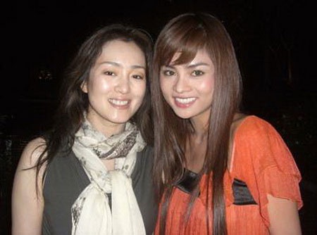 | Vũ Thu Phương chụp ảnh cùng minh tinh Củng Lợi. |