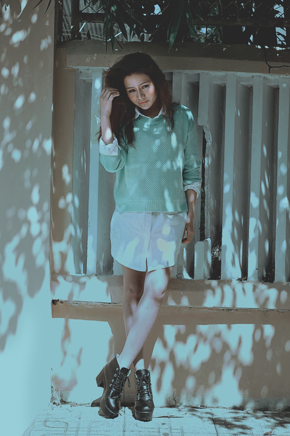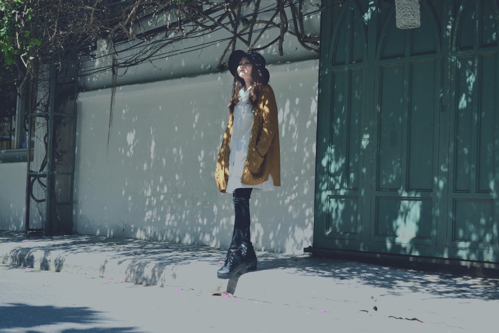 | Áo len luôn là item gắn bó với bạn gái trong mùa đông. Áo len mix áo sơ mi đơn giản cùng điểm nhấn là jeans rách và nón fedora đen giúp bạn có vẻ ngoài phủi bụi bặm đầy cá tính. |