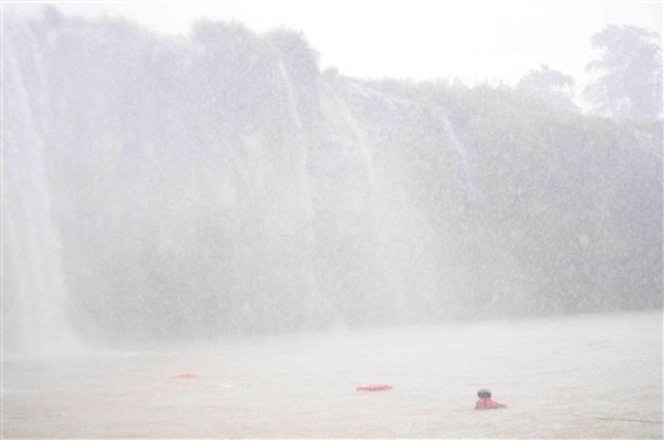 Trong phần vượt rào “ác liệt” ở chặng 5 của Cuộc đua kỳ thú 2013, đội chơi phải bơi giữa dòng nước chảy xiết dài 250 m đến chân ngọn thác, sau đó leo thang dây lên đỉnh thác cao gần 50 m trong điều kiện mưa lớn để nhận mật thư.