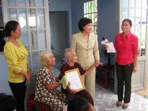 | Hai cụ già không giấu được vẻ xúc động khi được sống trong ngôi nhà mới, khang trang. |