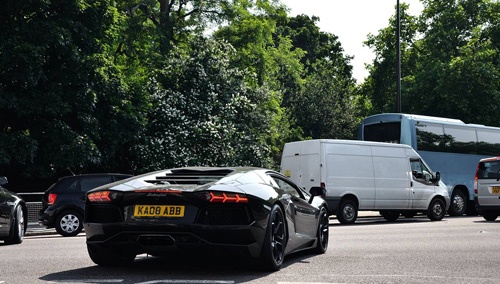 | Siêu xe Lamborghni Aventador LP700-4 xuất hiện nhiều trên đường phố London cho thấy sự yêu thích của các đại gia với siêu xe này. Điều này lý giải tại sao Aventador luôn trong tình trạng "cháy hàng", và danh sách chờ đợi của khách hàng rất dài. Siêu xe Lamborghini Aventador LP700-4 được trang bị khối động cơ V12 6.5 lít, công suất 700 mã lực tại 8.250 vòng/phút và mô-men xoắn 690 Nm tại 5.500 vòng/phút. Đây là một trong những siêu xe nhanh nhất thế giới, khi chỉ mất chưa đầy 3 giây để đạt vận tốc 100 km/h và vận tốc tối đa có thể đạt là 350 km/h. |