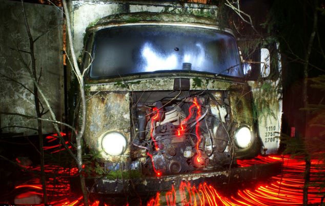 | Anh thường chọn các bối cảnh đổ nát như những chiếc xe cũ, ngôi nhà hoang. |