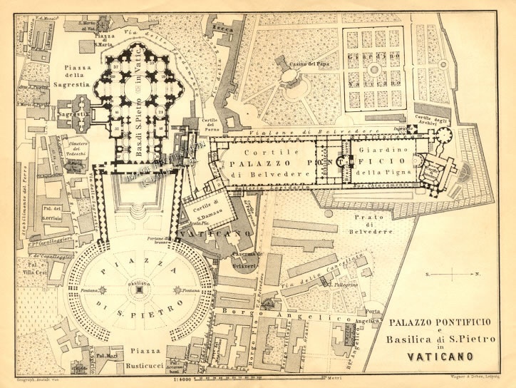 Nhà thờ St. Peter có dạng như một cây thập tự, dài 213 m, chỗ rộng nhất lên tới 137 m, với tổng diện tích hần 1.700 m2. |