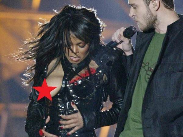 Một trong những khoảnh khắc tai tiếng và gây tranh cãi nhất trong lịch sử truyền hình là khi Janet Jackson và Justin Timberlake biểu diễn trên sân khấu Super Bowl 2004. Trong phần trình diễn, Timberlake đã xé một phần áo của Jackson để tăng thêm độ nóng nhưng vô tình động tác đã đi quá và làm Janet lộ nguyên một bên ngực.