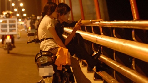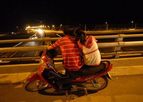 | Nhiều cặp đôi trẻ chọn những nơi vắng vẻ, ít người qua lại để ngồi tâm sự. Ảnh: Đất Việt. |