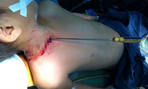 Khoa Cấp cứu Bệnh viện Nhi Trung ương từng tiếp nhận cháu Đỗ Văn Th (6 tuổi, Hoài Đức, Hà Nội) trong tình trạng rất nguy kịch với chiếc tuốc nơ vít (loại dài 40 cm) đâm vào vùng cổ và khi gia đình đưa vào, tuốc nơ vít vẫn còn tại vết thương.