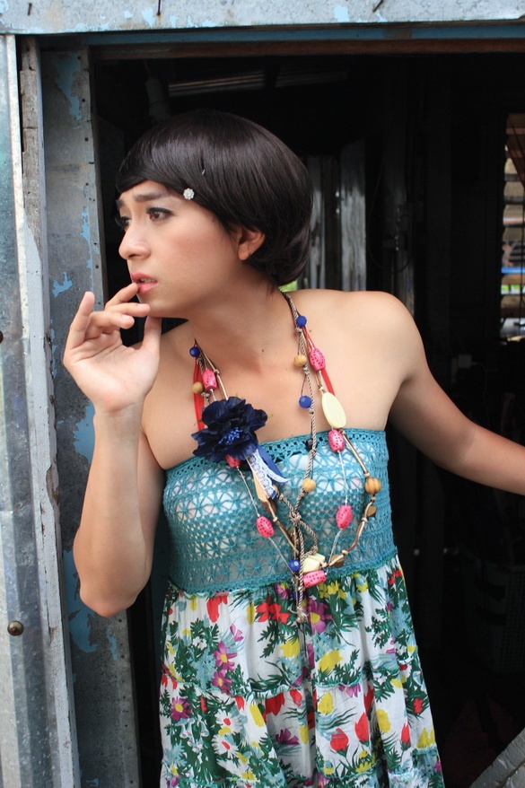 | Bạn trai của Khổng Tú Quỳnh không ngại giả gái, ăn mặc điệu đà, phụ kiện màu sắc và trang điểm loè loẹt để làm tròn vai diễn. |
