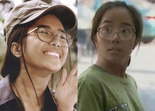 | Một nữ ca sĩ khác cũng khiến khán giả sửng sốt rồi bật cười với tạo hình xấu lạ trên màn ảnh chính là Quỳnh Nga. Tham gia bộ phim Lập trình cho trái tim, giọng ca Hà thành vào vai nhân vật chính Vũ Vũ - cô gái có biệt danh "cá sấu chúa". Đúng như nickname của mình, Vũ Vũ sở hữu một làn da đen nhẻm, đôi môi tái nhợt, tóc tai bù rù và phong cách thời trang sến sẩm, quê mùa. |