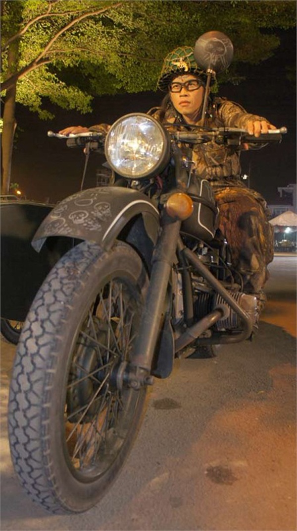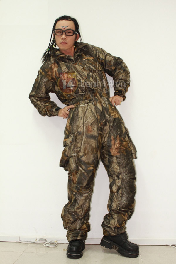 | Cuối năm 2011, Hoài Linh với tạo hình cực “ngầu như con ve sầu” trong Hoán đổi thân xác, anh lướt trên xe với bộ quân phục bụi bặm, đội mũ cối, tóc tết sặc sỡ, lông mày được kẻ vẽ uốn cong, trên người đầy hình xăm. |