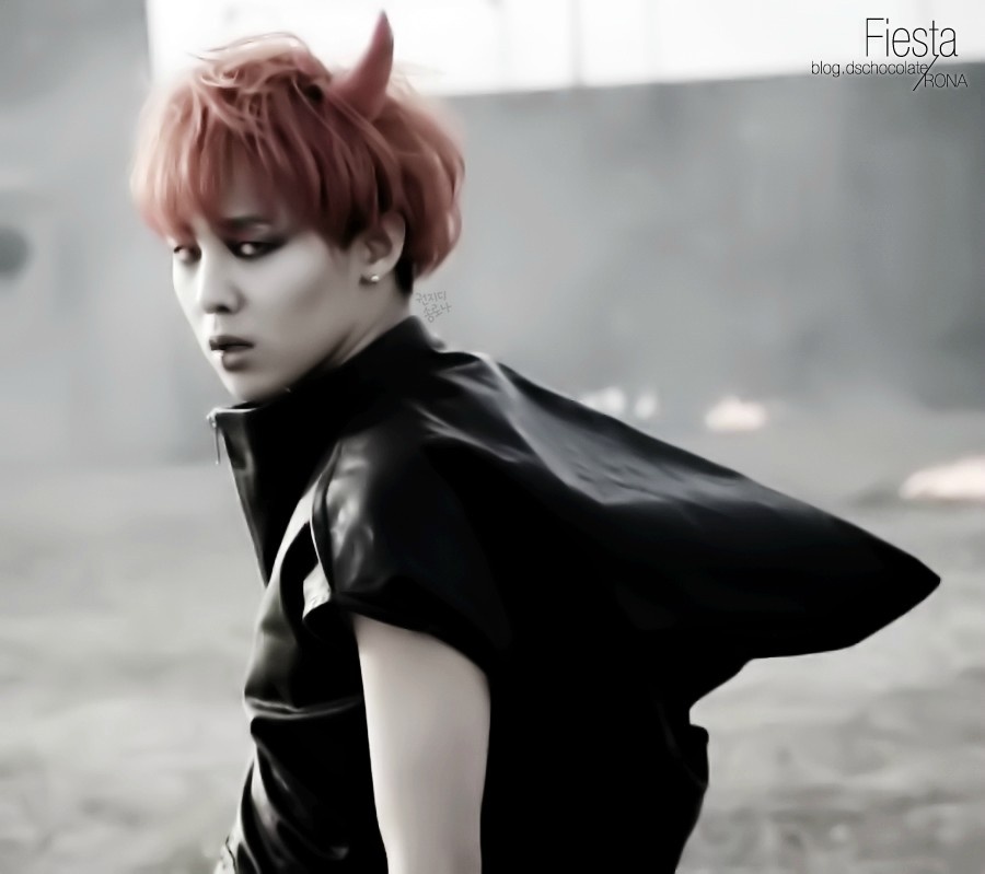 | Một trong những tạo ấn tượng nhất của GD trong MV Monster là mái tóc nhuộm đỏ với chiếc sừng tượng trưng cho quỷ dữ. |