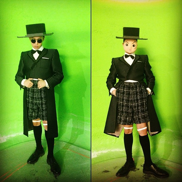 | Ở MV solo Michi-go, GD lại khiến người hâm mộ phải thắc mắc không biết nên gọi bộ trang phục của anh là vay hay quần. |