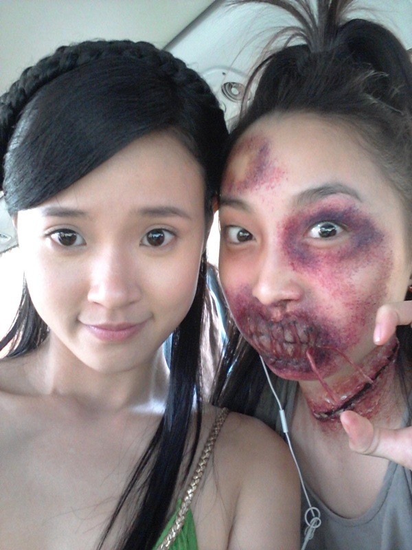 Để có gương mặt rùng rợn, đúng "chất" ma, Trang Trần mất 4 tiếng mỗi ngày để hóa trang.