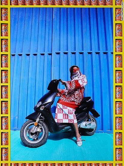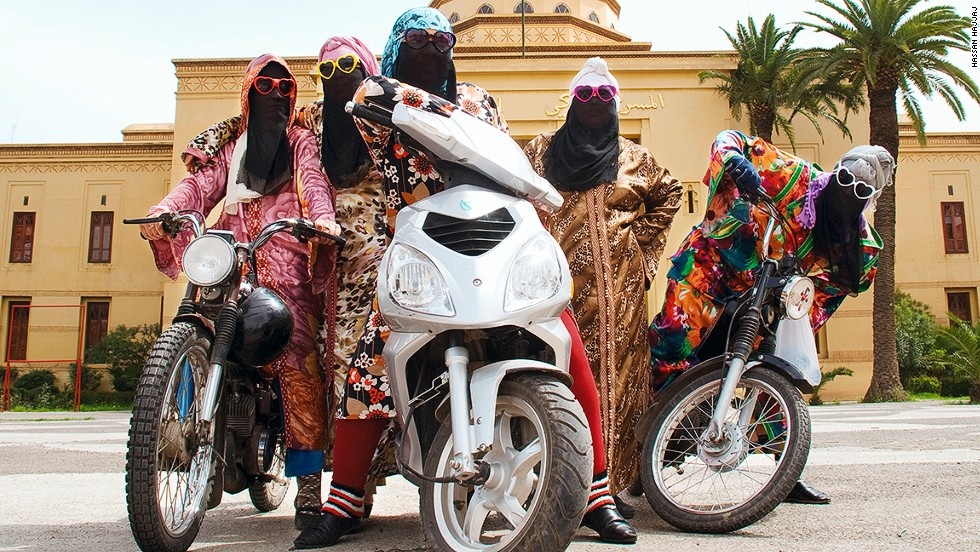 | Niềm yêu thích của "Kesh Angels" đã thu hút sự chú ý của nhiếp ảnh gia Hassan Hajjaj, người sinh ra ở Anh và chuyển đến Maroc khi 13 tuổi. |