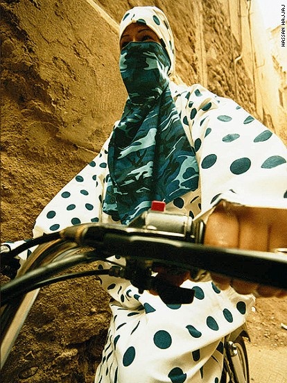 | Vì là những người theo đạo Hồi, các tay lái nữ đều phải mặc kín và bịt mặt khi lái xe ra đường. |