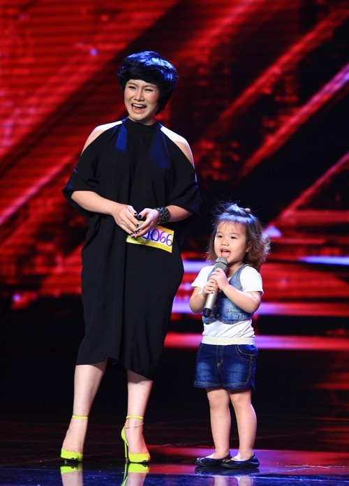 | Thu Phượng và con gái trên sân khấu X Factor. |