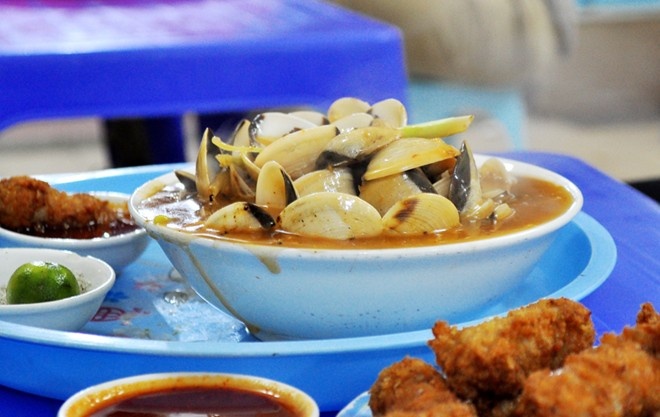 Những món được yêu thích ở đây là ngao xào me...