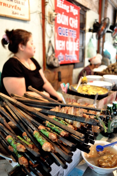 | Nhưng có nhiều hàng ăn lâu năm như quán bún chả kẹp que tre... |