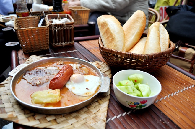 | Quán bánh mì chảo Nghĩa Tân. |
