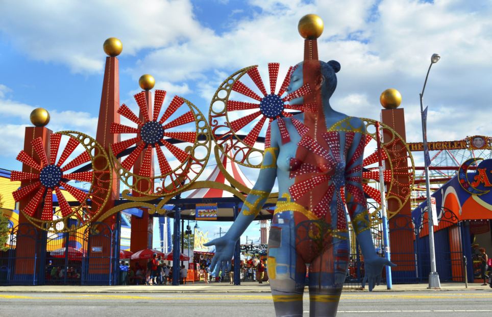 Tuy nhiên, sự kiên nhẫn và quyết tâm giúp tác giả thực hiện được những bức hình độc nhất vô nhị. Một trong những tác phẩm tuyệt đẹp phía trước khu vui chơi Coney Island. |