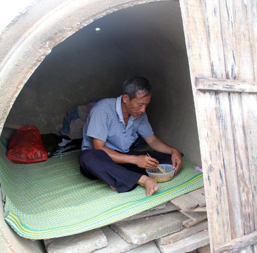 | Chú Nguyễn Hữu Định - bố thủ khoa Nguyễn Hữu Tiến - từng sống ống cống để tiết kiệm tiền nuôi con ăn học. |