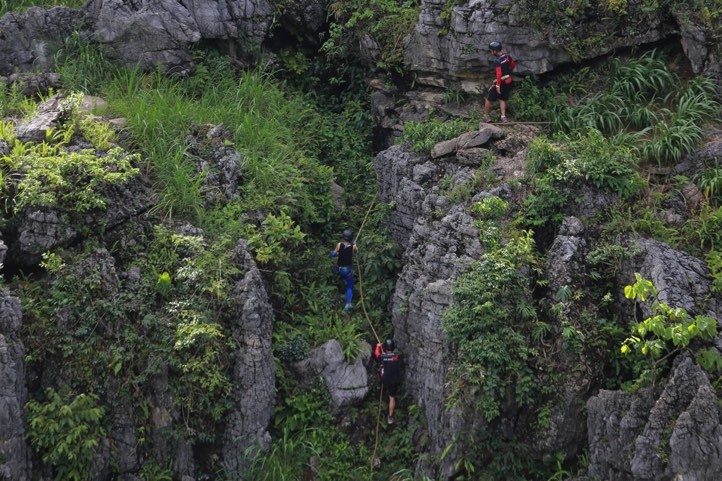 | Leo trèo giữa những ngọn núi đá tai mèo để đến với thử thách. |