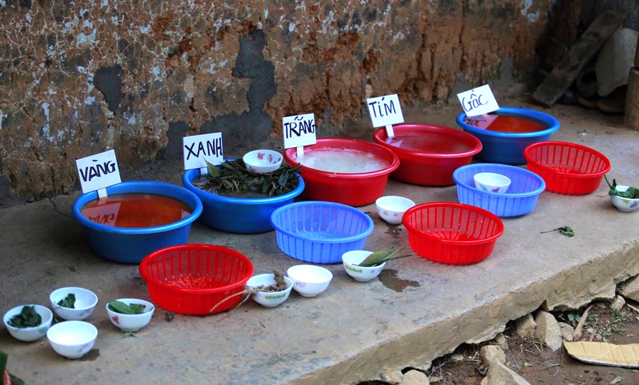 | Nguyên liệu tạo màu cho xôi được lấy từ chính những loại lá gắn liền với đời sống người dân. |