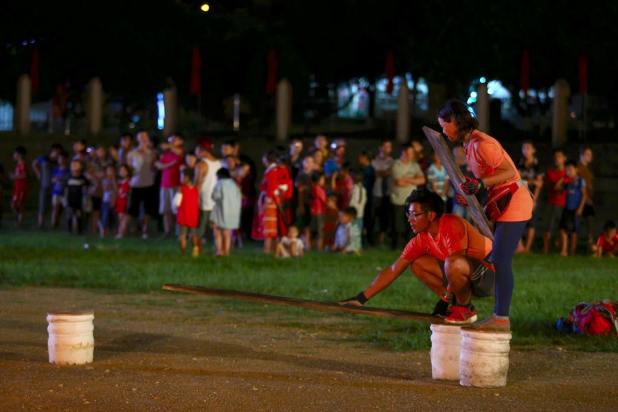 | Di chuyển với 2 tấm ván cũng là game khiến người chơi dễ nản chí. Tuy nhiên, các đội đều không bỏ cuộc, kiên trì hoàn thành cho đến 3 giờ sáng. |