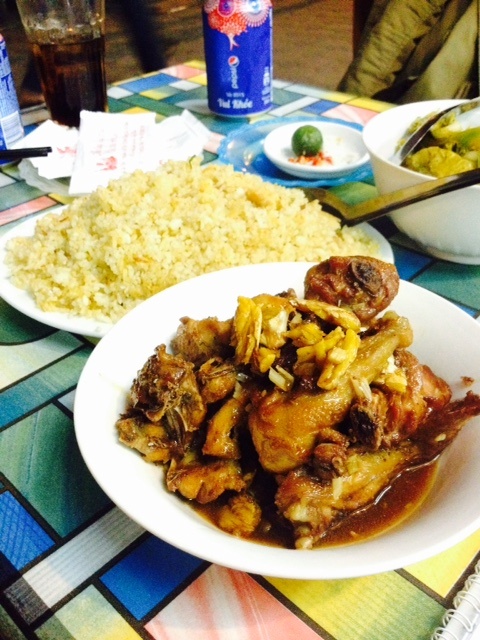 Quán cơm này rất quen thuộc với dân công sở ở đoạn phố Bà Triệu giao với Lý Thường Kiệt. Tại đây bán “thập cẩm ngũ vị” như: xôi, phở, bún, cơm nhưng chủ yếu chuyên về gà. Trong đó, cơm rang gà quay là món được mọi người gọi nhiều nhất.
