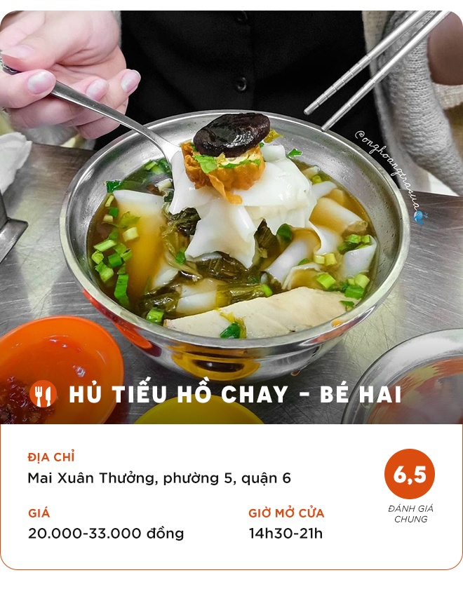 Không dễ để bạn có thể tìm được địa chỉ bán hủ tiếu hồ ở TP.HCM. Tuy nhiên, một khi thưởng thức, nhiều người nhanh chóng ghiền hương vị độc đáo của món ăn này. Bạn có thể tìm đến 3 địa chỉ nổi tiếng dưới đây để nếm thử hủ tiếu hồ.